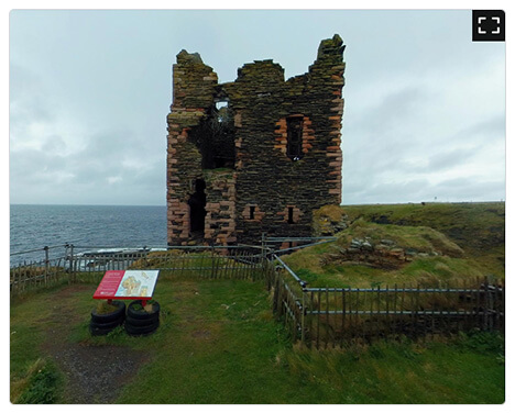 We offer a realistic point of view of the Scottish Highlands and the Sinclair Girnigoe Castle with virtual reality and 3D.