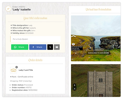 Your Lady / Lord title deserve a specific page that allows you to share with anyone your new status.